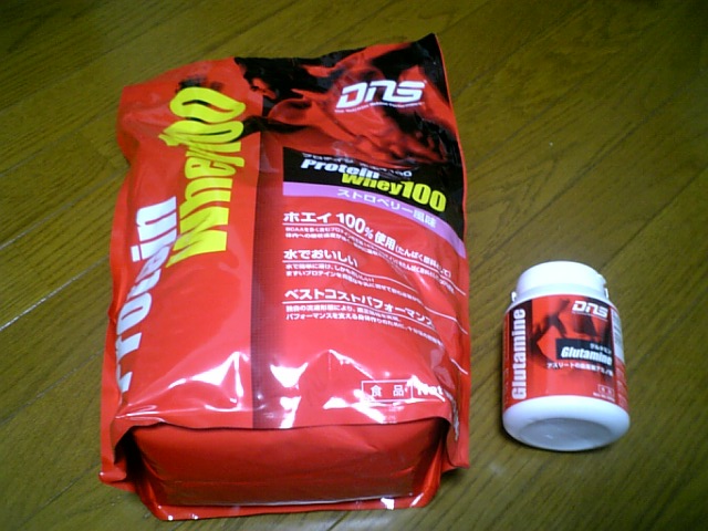 使っているのはDNSのプロテインホエイ100とグルタミンです。